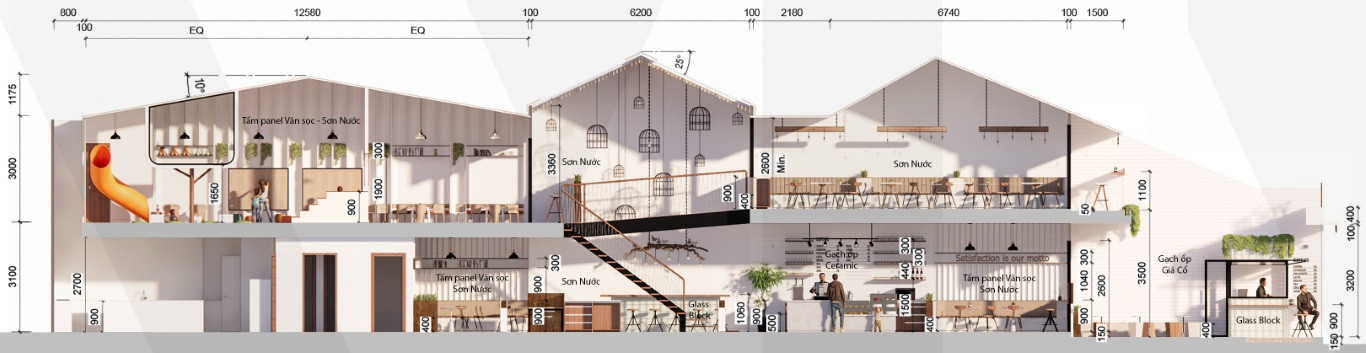 The design aesthetic portrays a modern delicatessen; combining polished concrete and tile, glass block, dark oak accents and feature planting. Seating zones provide options of indoor or outdoor, covered or open, hard or soft seating. A street-side quick service counter captures business from passing foot and bike traffic, while a children’s play area at the rear appeals to families.