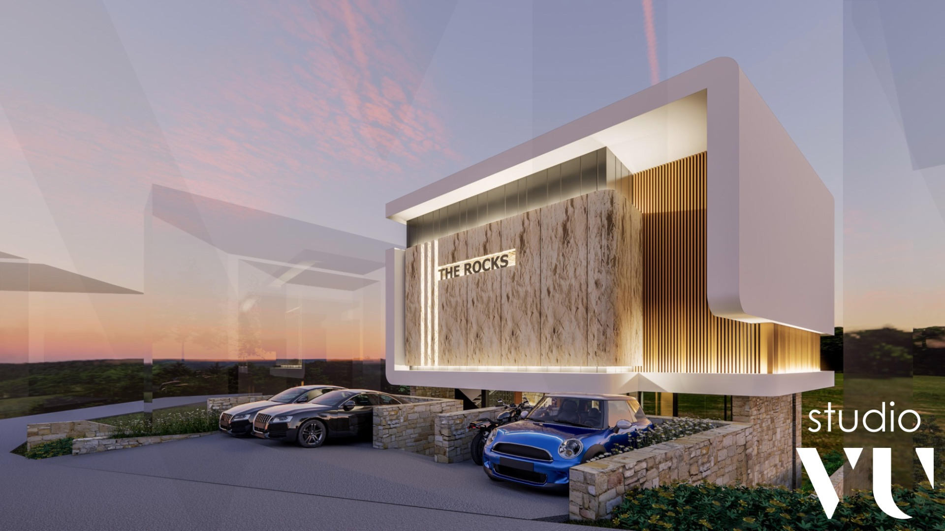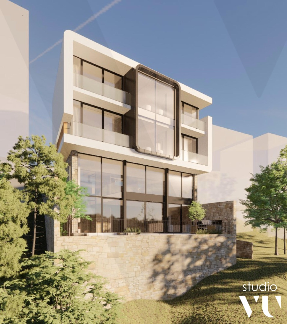 A modern villa for group entertaining which makes full use of its steep hillside site. The clients requested a big program for this small site; with the desire for a statement building exhibiting a sense of intrigue.