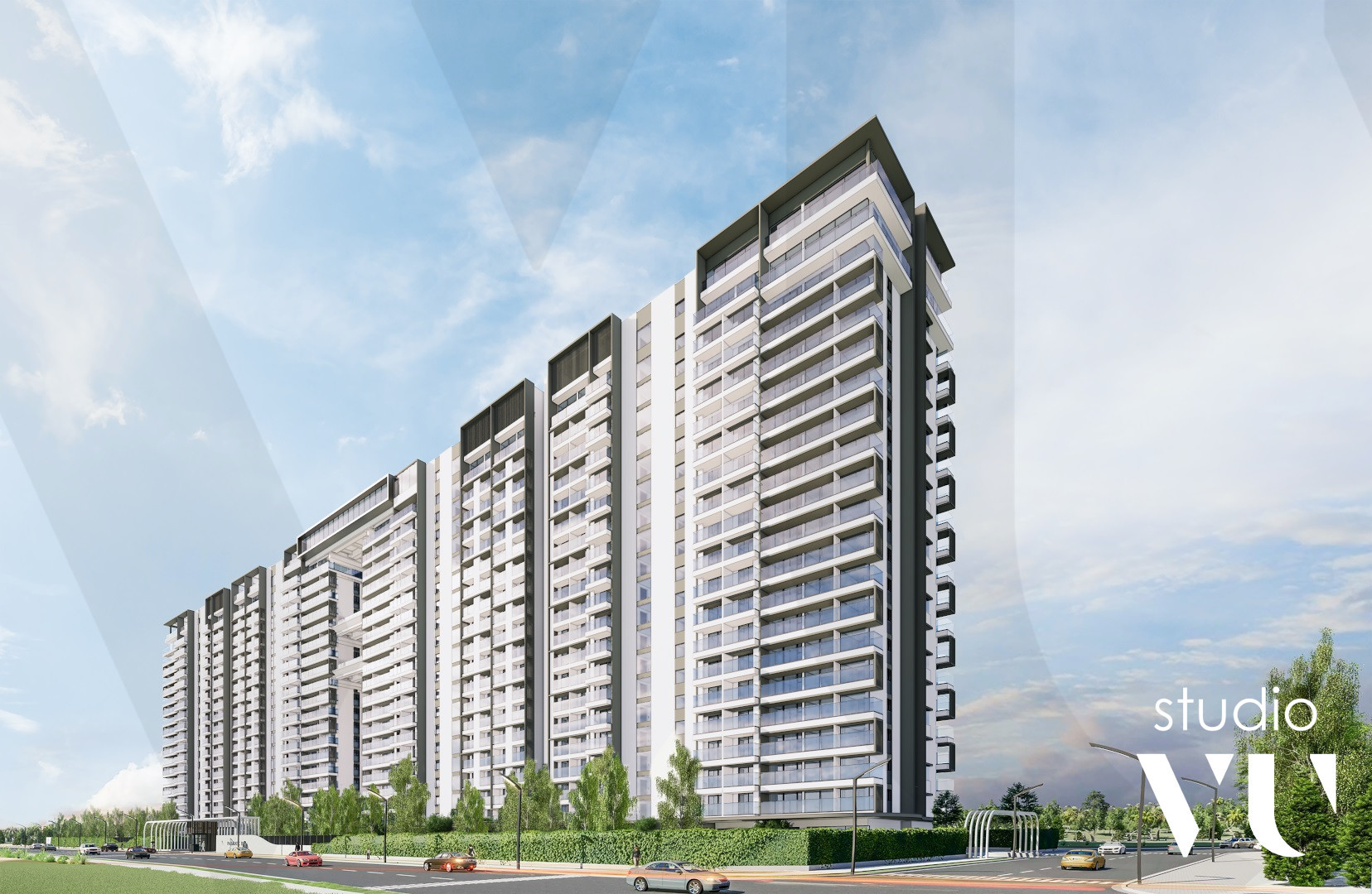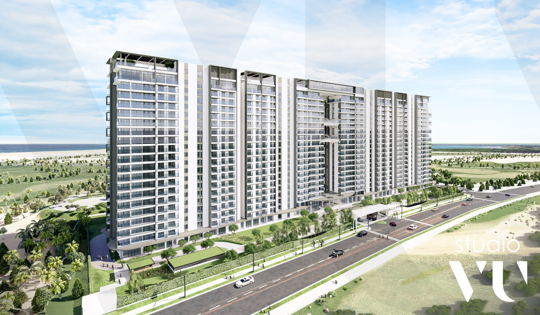 The design objective was to create a resort ambience with emphasis on panoramic views from each unit. Appearance is modern, with low maintenance cladding to suit the coastal environment. Apartments are a combination of studio, 1 and 2 bedroom, duplex and penthouse units. Amenities include a retail podium, sky gardens, rooftop dining and recreational facilities.